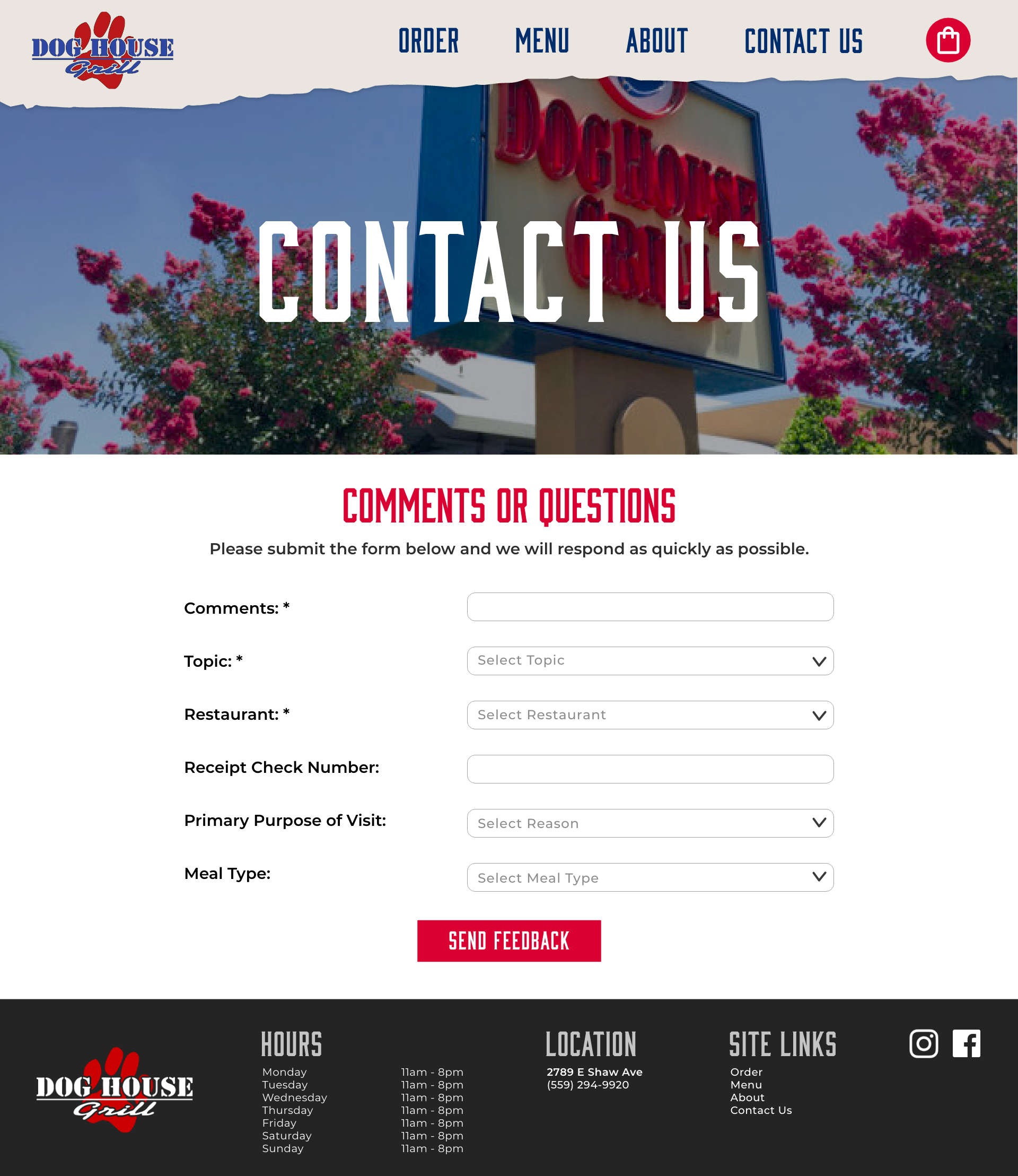 A website redesign of Fresno's Dog House Grill. This is a concept project done for GD 142 (User Experience and Interface Design) at Fresno State. I designed 3 pages—order, about, and contact us.